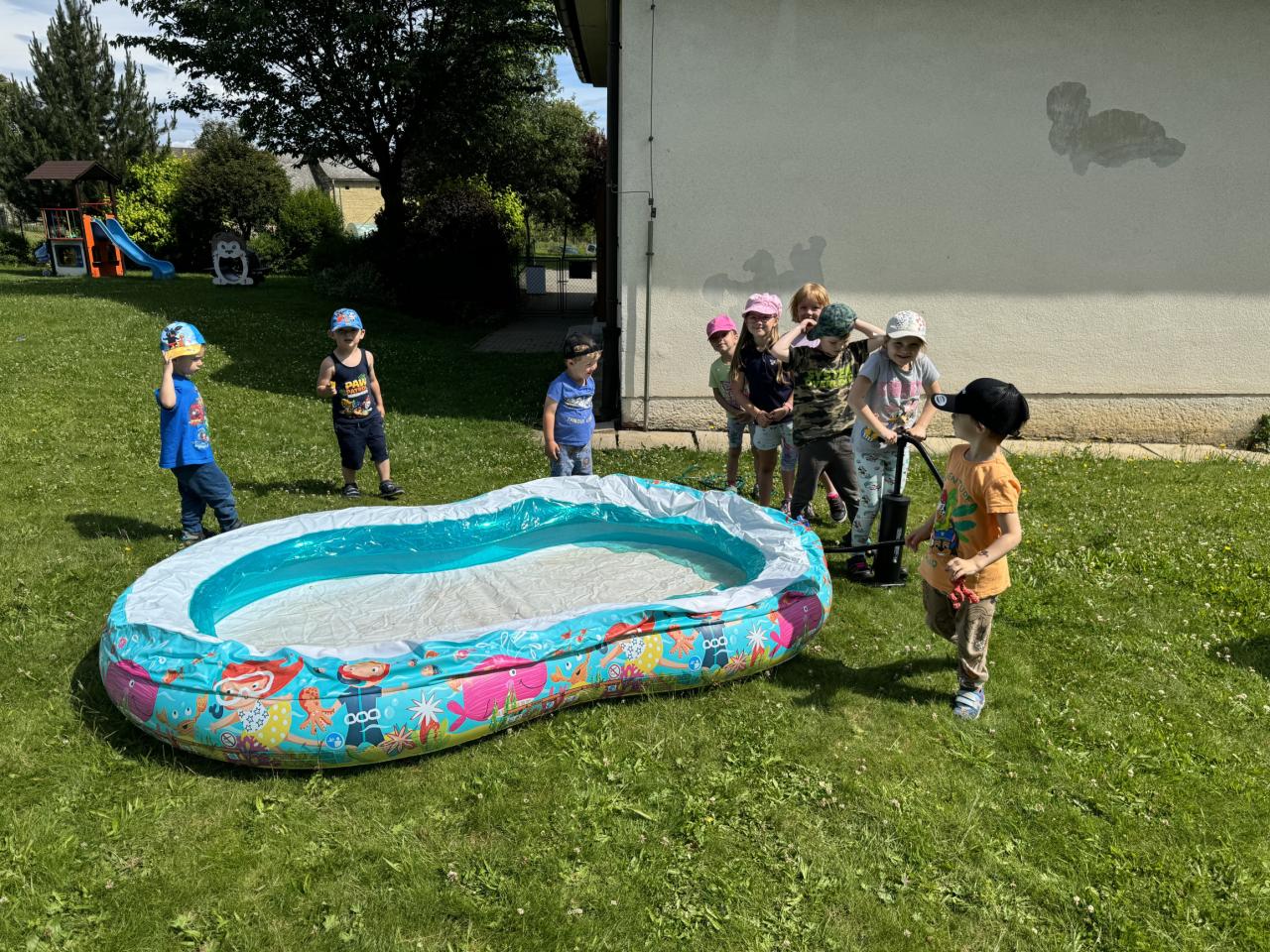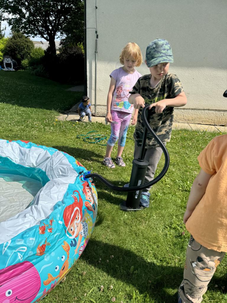 V pondělí 17.6.2024 jsme s dětmi na zahradě vyčistili, nafoukli a napustili bazén.