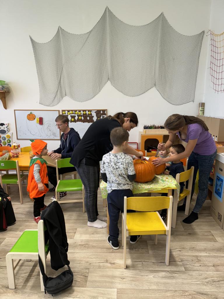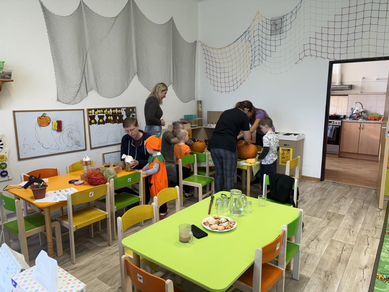 Halloweenské dopoledne v MŠ, pečení a odpoledne s rodiči.