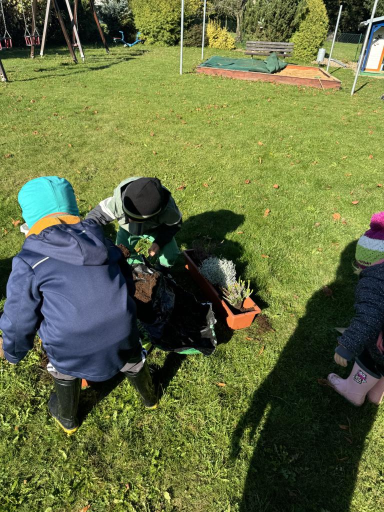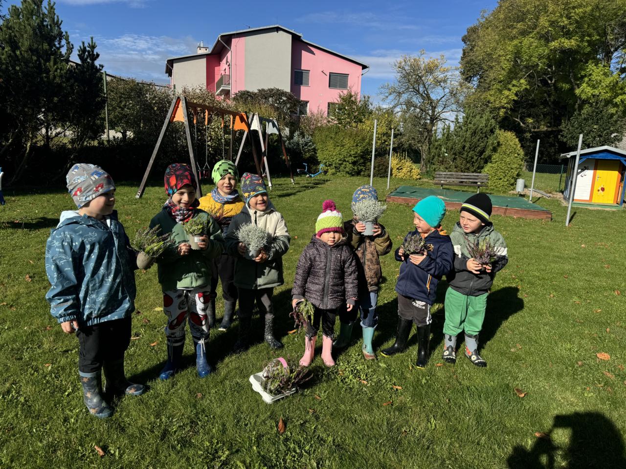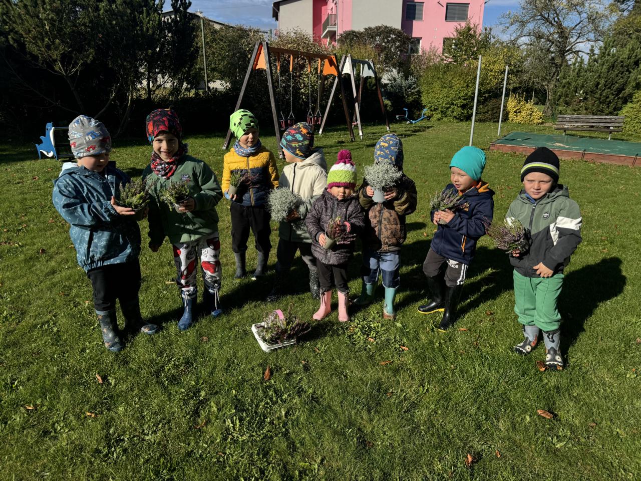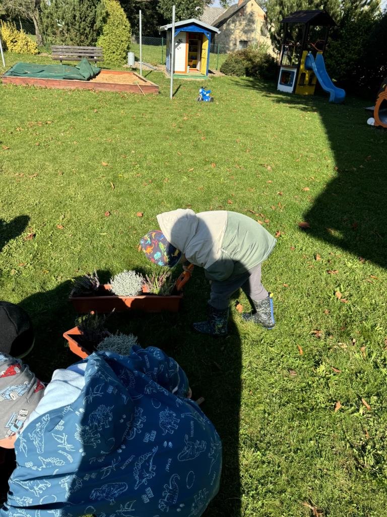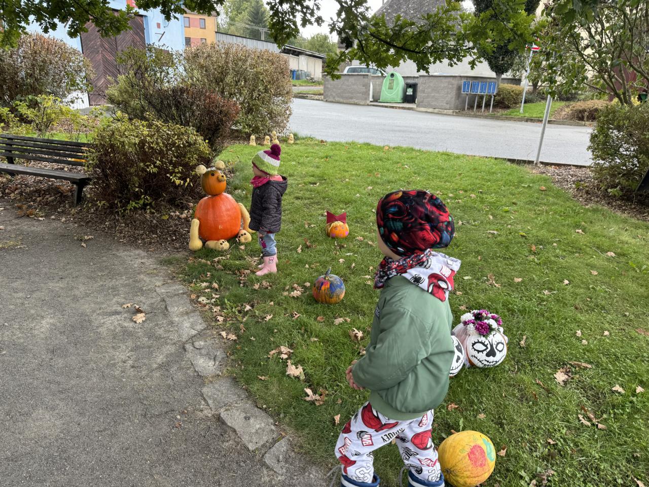 Procházka do parčíku - halloweenská výstava dýní, sázení podzimních květin na školní zahradě.