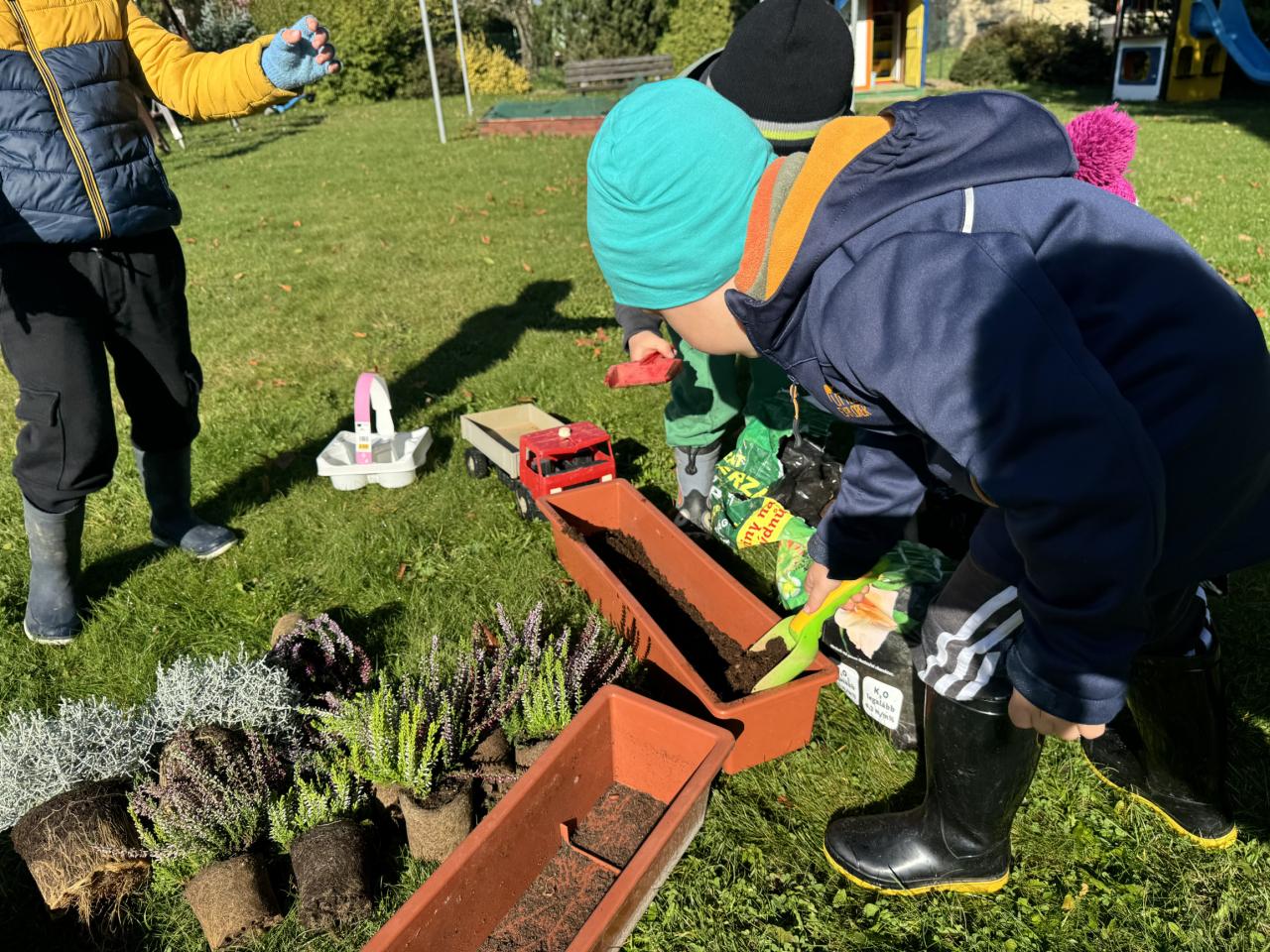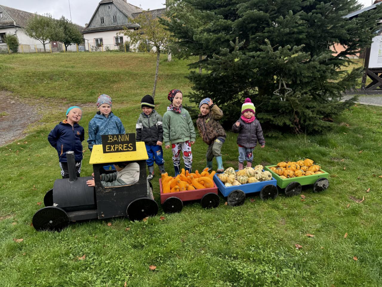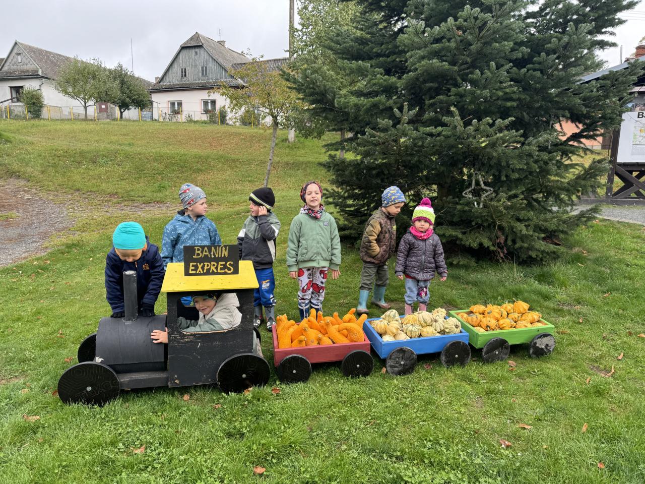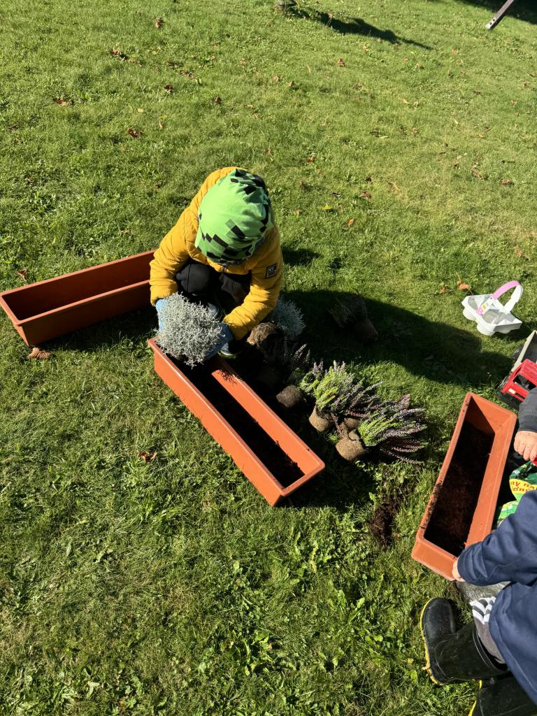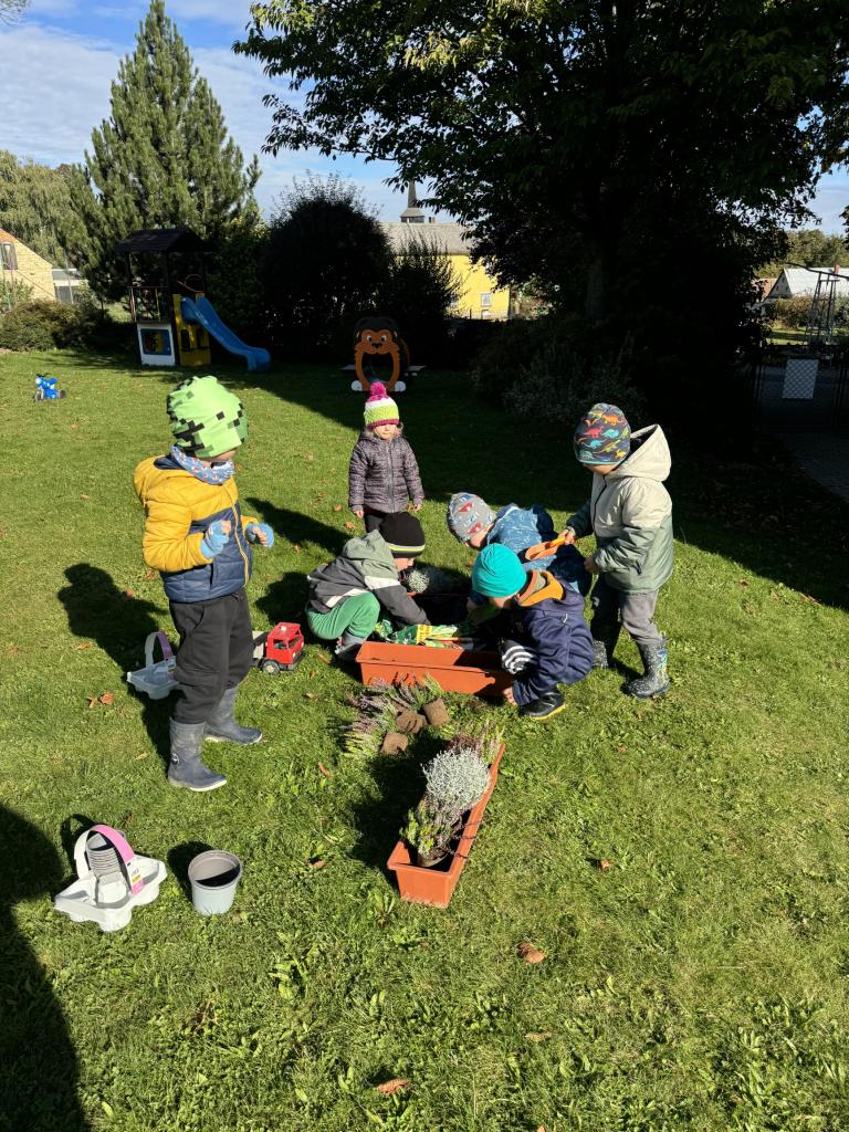 Procházka do parčíku - halloweenská výstava dýní, sázení podzimních květin na školní zahradě.