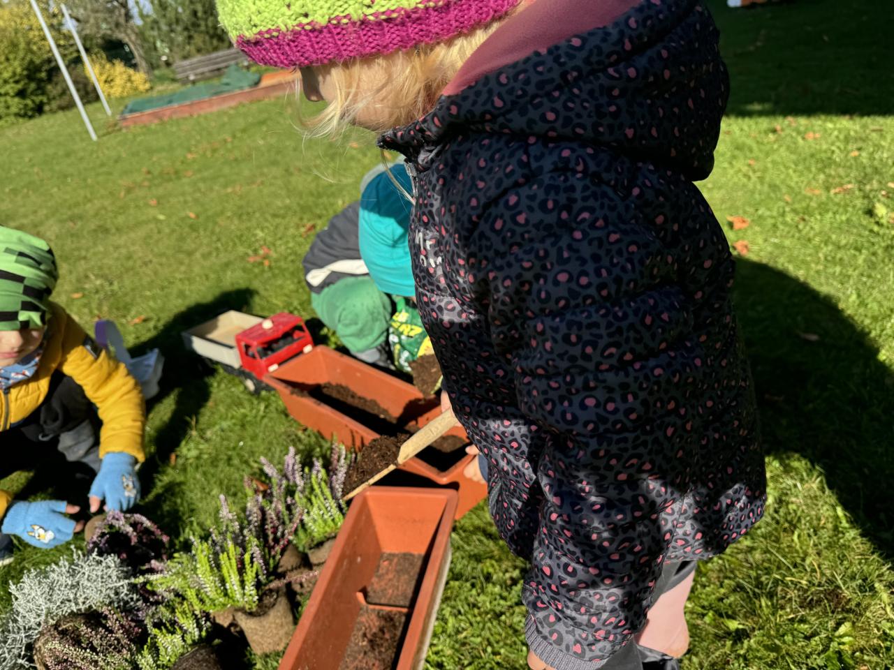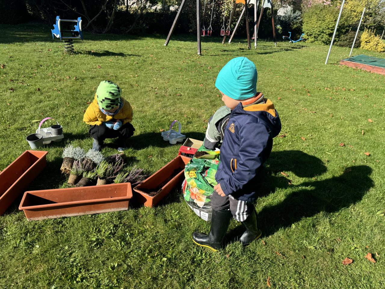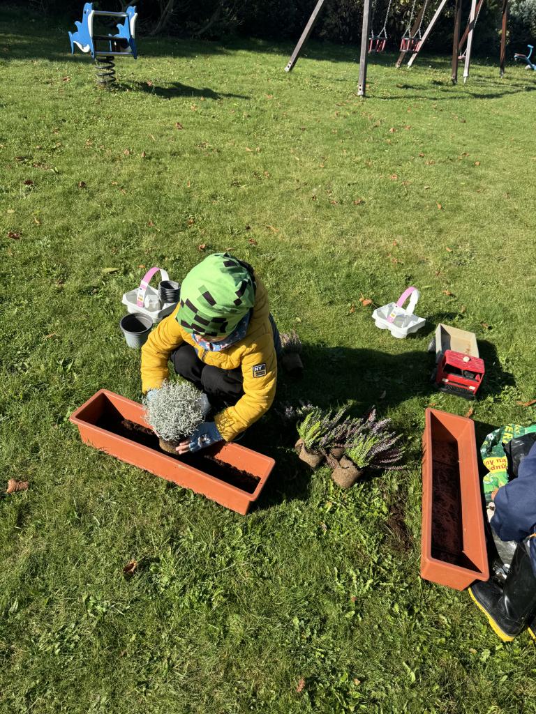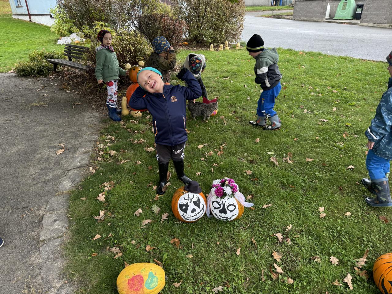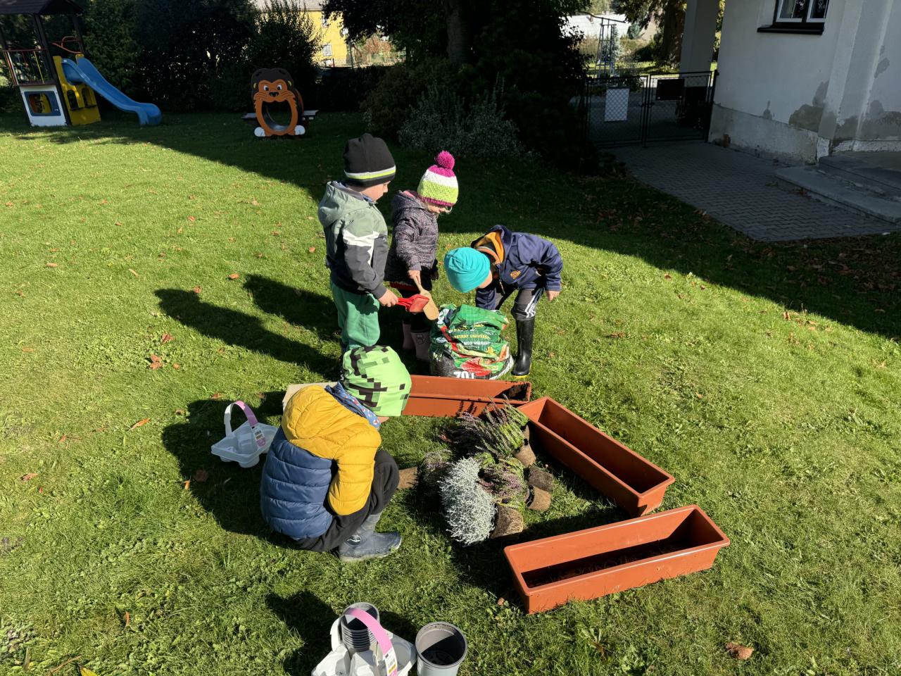Procházka do parčíku - halloweenská výstava dýní, sázení podzimních květin na školní zahradě.